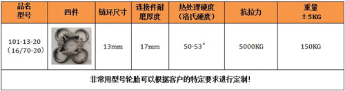 保養(yǎng)鏈耐磨性好,抗疲勞性強,根據(jù)使用條件壽命達3000-8000小時。拆裝方便,省時省力,產(chǎn)品規(guī)格齊全,可與進口裝載機所匹配,輪胎保護鏈,采用高科技耐磨材料制成其結構新穎緊湊,性能穩(wěn)定,主要適用于礦山作業(yè)的裝載機,其輪胎磨損快,使用壽命短,輪胎價格昂貴,使用成本高,將本產(chǎn)品嚴密的包裹在裝載機的輪胎上,可以有效的保護裝載機的輪胎,不被尖銳的石塊劃傷刺破,延長了輪胎的使用壽命,使用一條輪胎保護鏈,能節(jié)省十條輪胎以上的費用還能提高裝載機的工作效率和安全是礦山作業(yè)的必備品。
